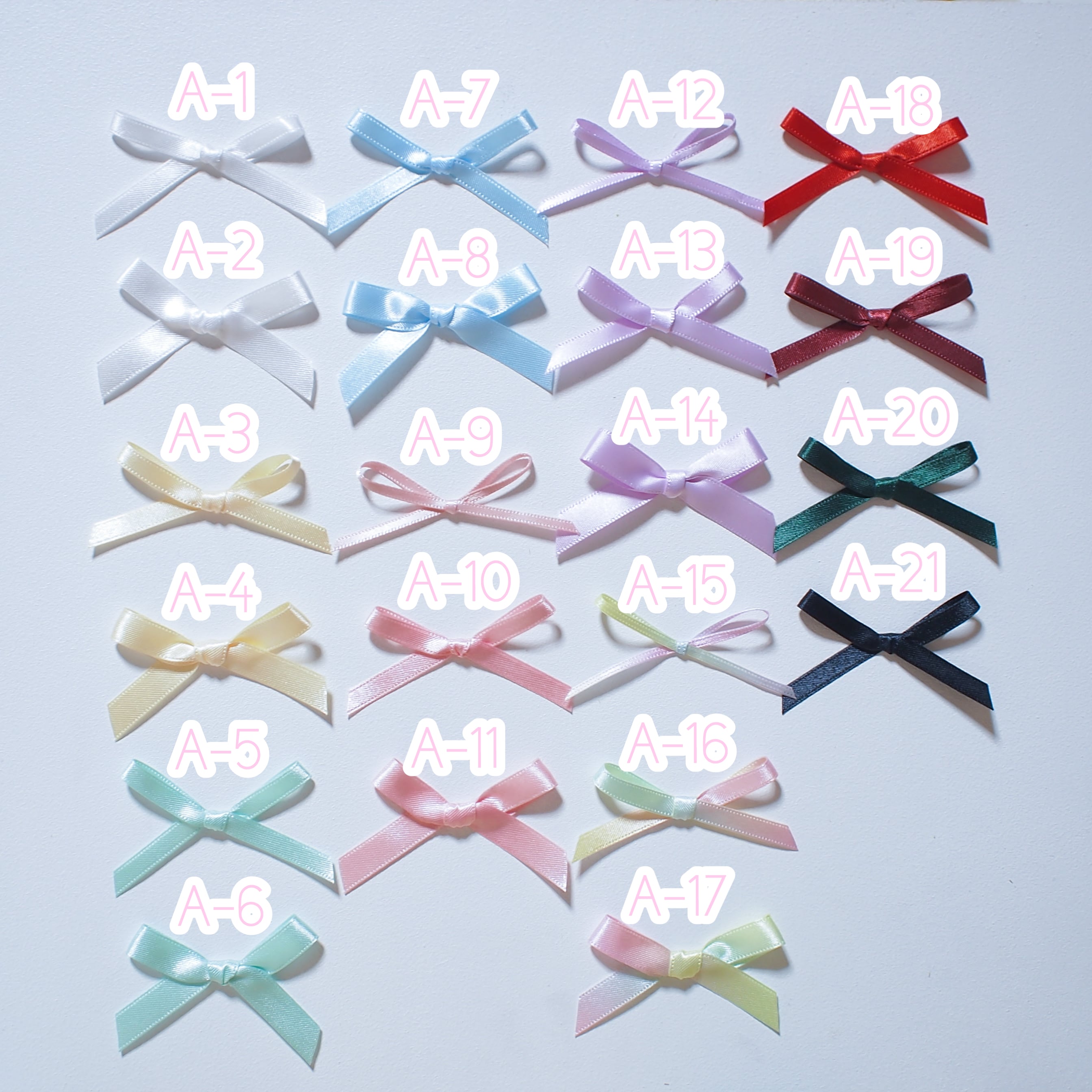 ※ A-15.16.17はグラデーションリボンのため、色の出方に個体差があります(5枚目のお写真をご覧ください)